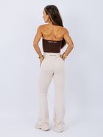 Legging de cintura alta e cós largo no modelo flare, que é mais justo na coxa e vai abrindo na parte de baixo, estilo boca de sino. Ela é em um tecido que garante uma ótima firmeza, conforto e se adapta perfeitamente ao corpo. Possui costura empina bumbum.