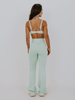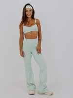 Legging de cintura alta e cós largo no modelo flare, que é mais justo na coxa e vai abrindo na parte de baixo, estilo boca de sino. Ela é em um tecido que garante uma ótima firmeza, conforto e se adapta perfeitamente ao corpo. Possui costura empina bumbum.
