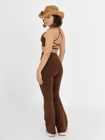 Da collab Agua Azul + Mais Mú, a Legging Flare é de cintura alta e cós largo no modelo flare, que é mais justo na coxa e vai abrindo na parte de baixo, estilo boca de sino. Ela é em um tecido que garante uma ótima firmeza, conforto e se adapta perfeitamente ao corpo. A peça traz a etiqueta exclusiva da coleção— um detalhe que reforça sua identidade e autenticidade. Possui costura empina bumbum.