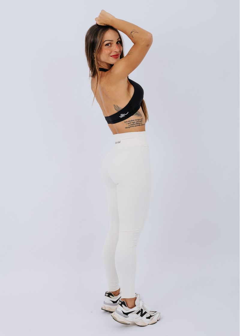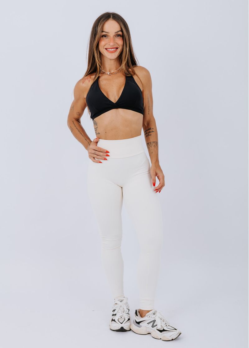 Legging de cintura alta, cós largo e sem costura frontal. A modelagem dela está impecável! Possui costura empina bumbum. (Modelo veste M)