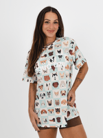 Criamos esse camisão especial para celebrar nossos melhores amigos de quatro patas, que enchem nossas vidas de amor e carinho. A peça traz uma estampa exclusiva inspirada nos doguinhos.