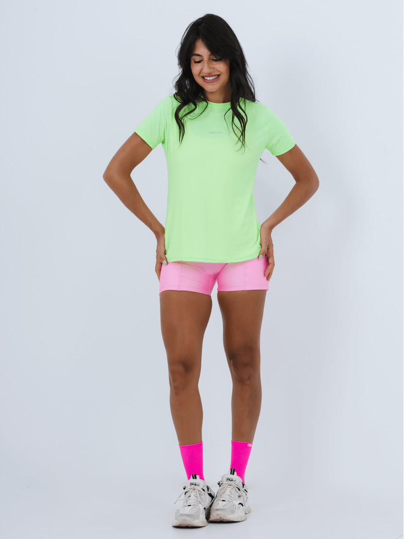 A Camiseta Run Dry é leve, respirável e ideal para treinos. Feita em tecido furadinho levemente transparente, tem toque macio e geladinho, proporcionando ótima ventilação e conforto térmico durante a prática de exercícios. Tamanho M veste P/M e um G mais justinho.Tamanho GG veste G mais soltinho e GG. (Modelo veste parte de cima P/ parte de baixo M) Medidas modelo Busto: 82 cm Cintura: 65 cm Quadril: 96 cm Altura: 1,68 m
