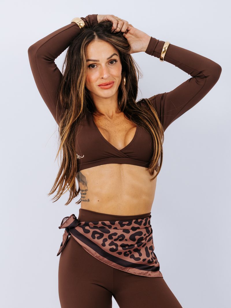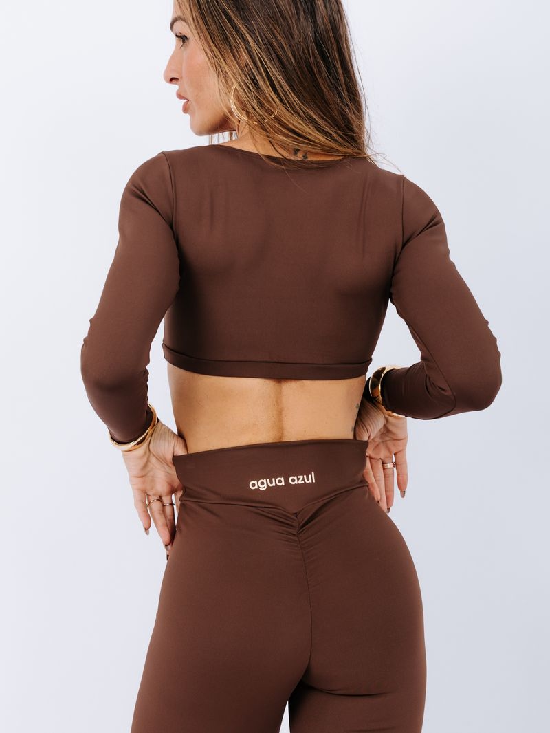 Cropped de manga longa com duas opções de decote para você usar! O decote em V deixa à mostra na medida certa, pois possui elástico na parte do busto, garantindo sustentação. Também há a opção de usar o decote arredondado, que oferece uma opção mais fechada. Este cropped é ótimo para os dias mais frios ou para compor looks lindíssimos no dia a dia. Silk da logo na lateral do decote. Não possui entrada para bojo.