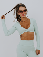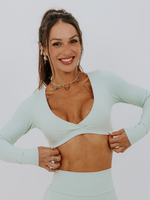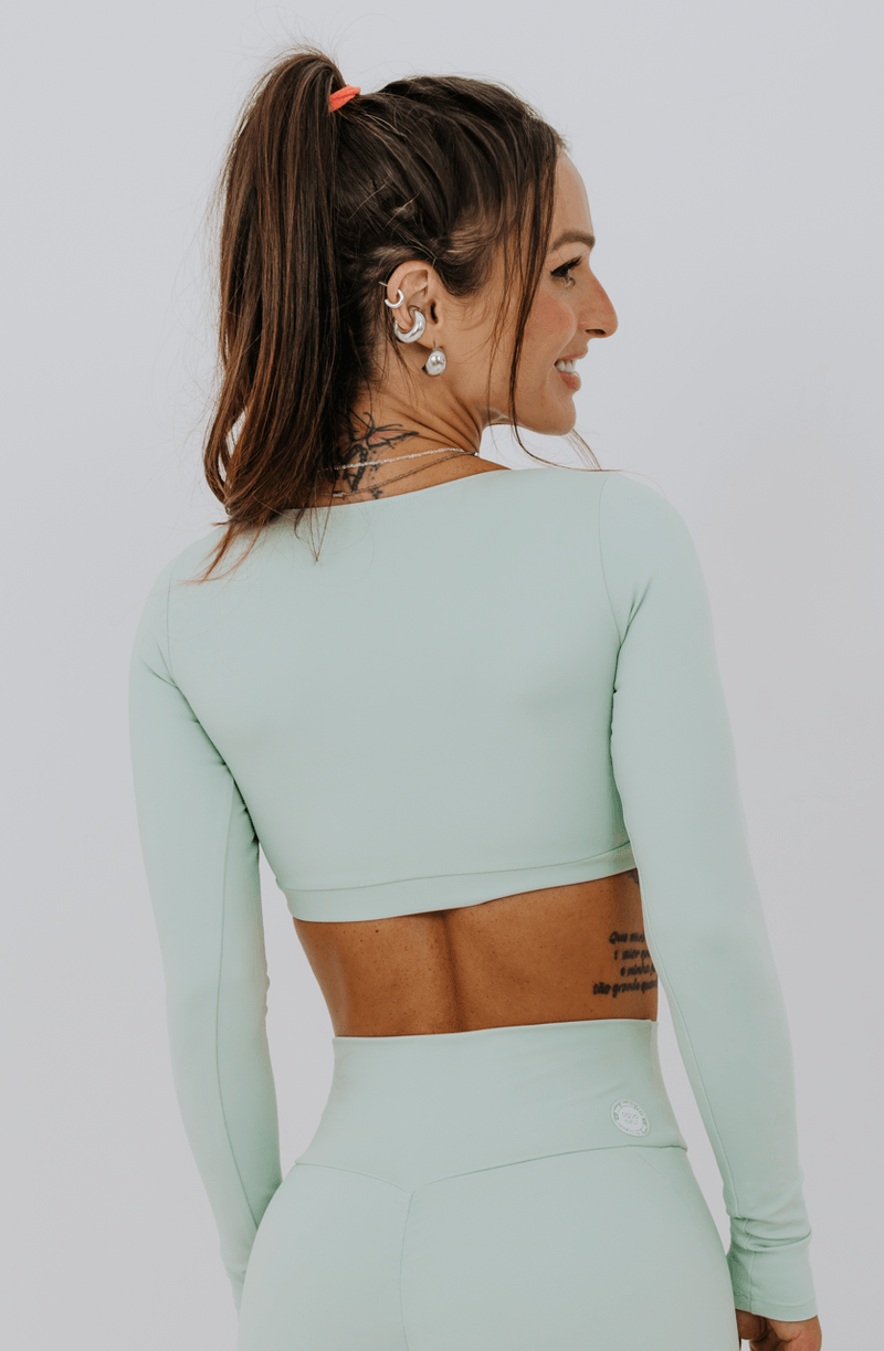 Cropped de manga longa com duas opções de decote para você usar! O decote em V deixa à mostra na medida certa, pois possui elástico na parte do busto, garantindo sustentação. Também há a opção de usar o decote arredondado, que oferece uma opção mais fechada. Este cropped é ótimo para os dias mais frios ou para compor looks lindíssimos no dia a dia. Silk da logo na lateral do decote. Não possui entrada para bojo.