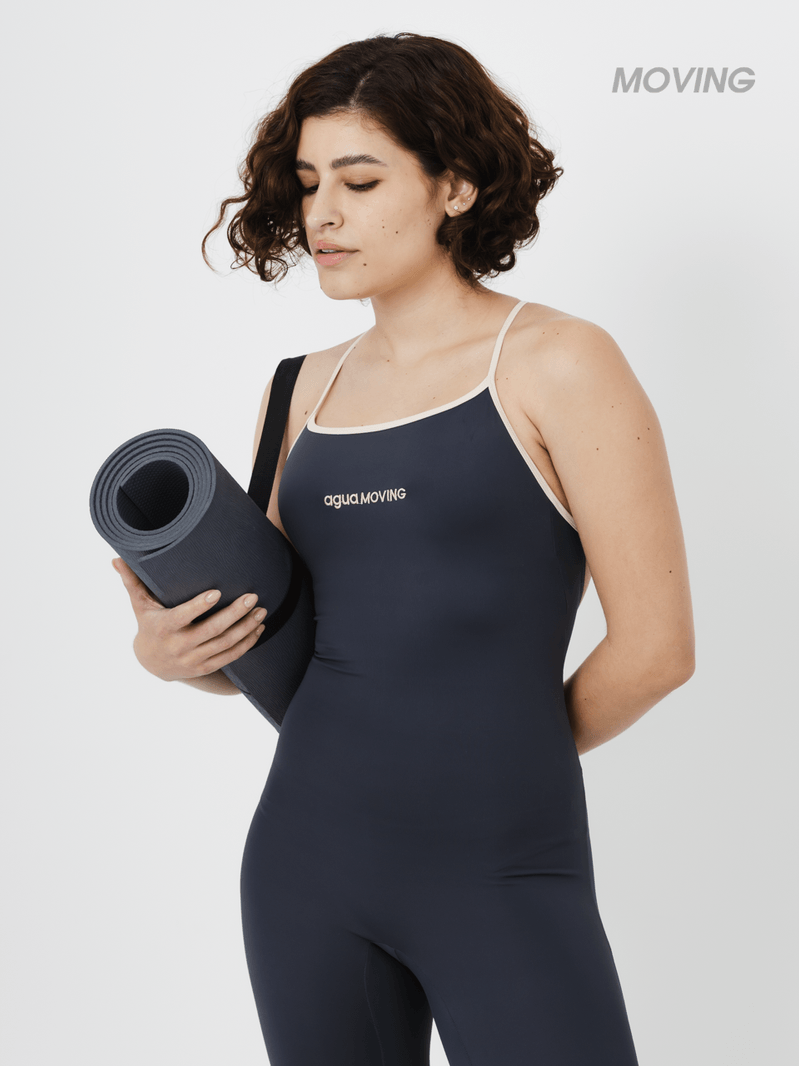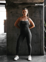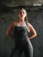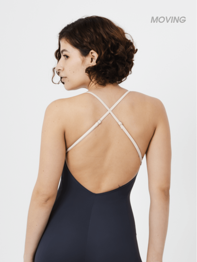 Macacão longo, sem costura frontal, com decote reto na frente e forro para maior conforto. Nas costas, ele é decotado e as alças possuem reguladores para melhor ajuste ao corpo. Não possui entrada para bojo.