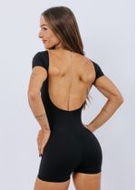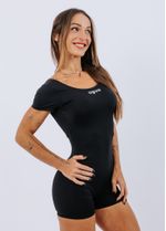 Peça produzida sob encomenda; o prazo de confecção é de até 7 dias úteis após a confirmação do pedido. Macaquinho curto, com forro na parte do busto para melhor conforto, sem costura frontal, com manguinhas e com decote arredondado na frente; nas costas ele é decotado mas com elástico na barra para garantir total sustentação. Tecido que garante uma ótima firmeza, conforto e se adapta perfeitamente ao corpo. Ele é perfeitooo! Não possui entrada para bojo. (Modelo veste P)