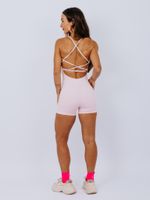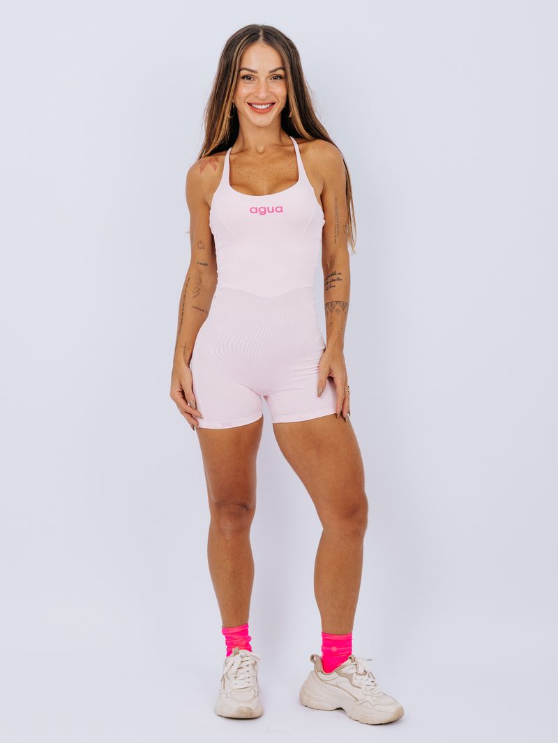Macaquinho de comprimento médio e sem costura frontal. Os recortes estratégicos na frente desenham e valorizam as curvas, enquanto as costas estilo corset trazem firmeza e um visual elegante. As alças com reguladores e elástico embutido permitem ajuste total ao corpo, garantindo um caimento impecável. O decote suave, com elástico interno, oferece mais sustentação e segurança durante o movimento.