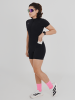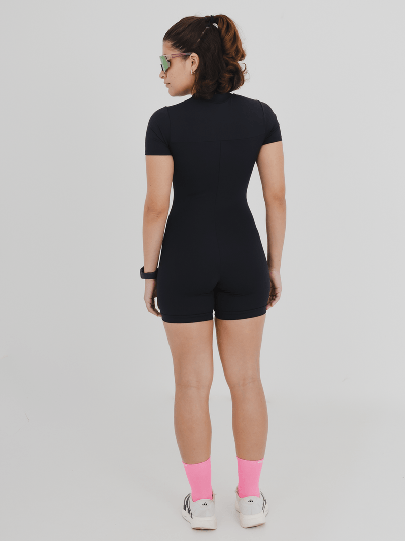 Nossa primeira linha de corrida chegou: Agua Run. O Macaquinho Fight Pró agora com tudo o que você precisa para correr com estilo e conforto. De comprimento médio, sem costura frontal e com recortes estratégicos que valorizam a silhueta. Trouxemos a peça com pala na perna, que garante melhor aderência e evita que o macaquinho suba durante a corrida. Agora com bolsos laterais, ideais para levar o essencial nos treinos. A região do busto é dupla e conta com zíper frontal, para você usar fechado ou levemente aberto com segurança e possui detalhe refletivo exclusivo Agua Run. Não possui entrada para bojo.