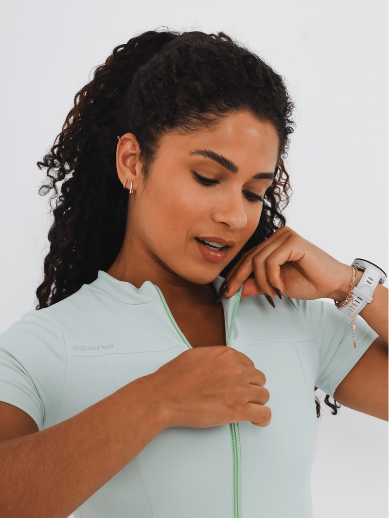 Nossa primeira linha de corrida chegou: Agua Run. O Macaquinho Fight Pró agora com tudo o que você precisa para correr com estilo e conforto. Mais comprido, sem costura frontal e com recortes estratégicos que valorizam a silhueta. Trouxemos a peça com uma pala mais grossa na perna, que garante melhor aderência e evita que o macaquinho suba durante a corrida. Agora com bolsos laterais, ideais para levar o essencial nos treinos. A região do busto é dupla e conta com zíper frontal, para você usar fechado ou levemente aberto com segurança e possui detalhe refletivo exclusivo "Agua Run". Não possui entrada para bojo.