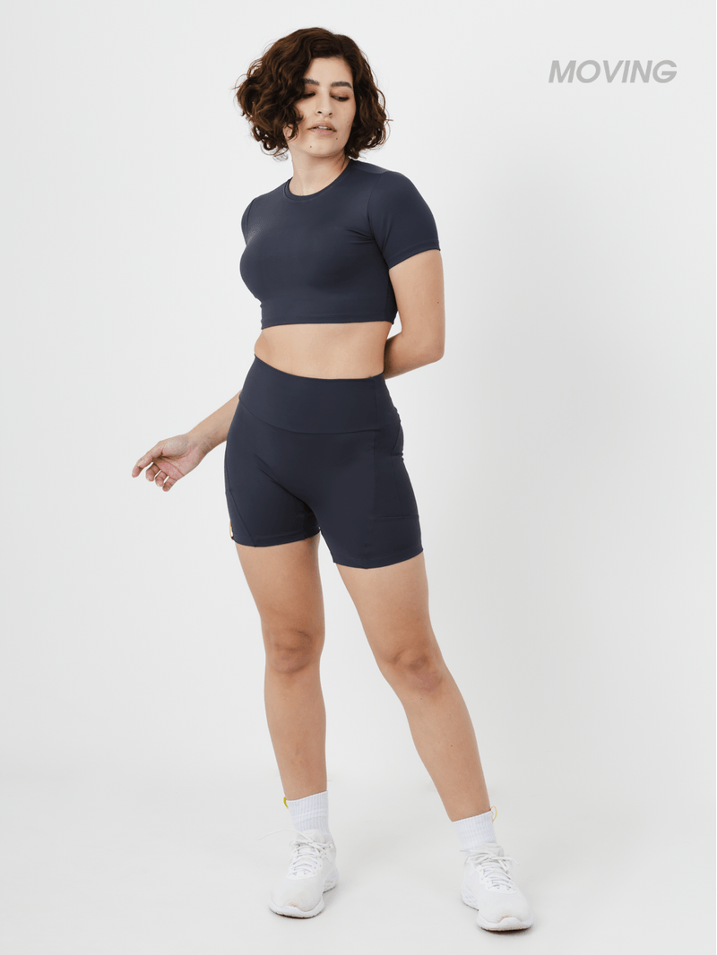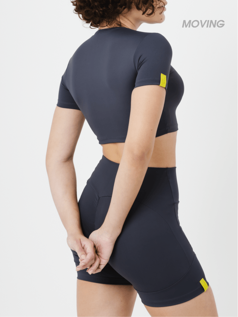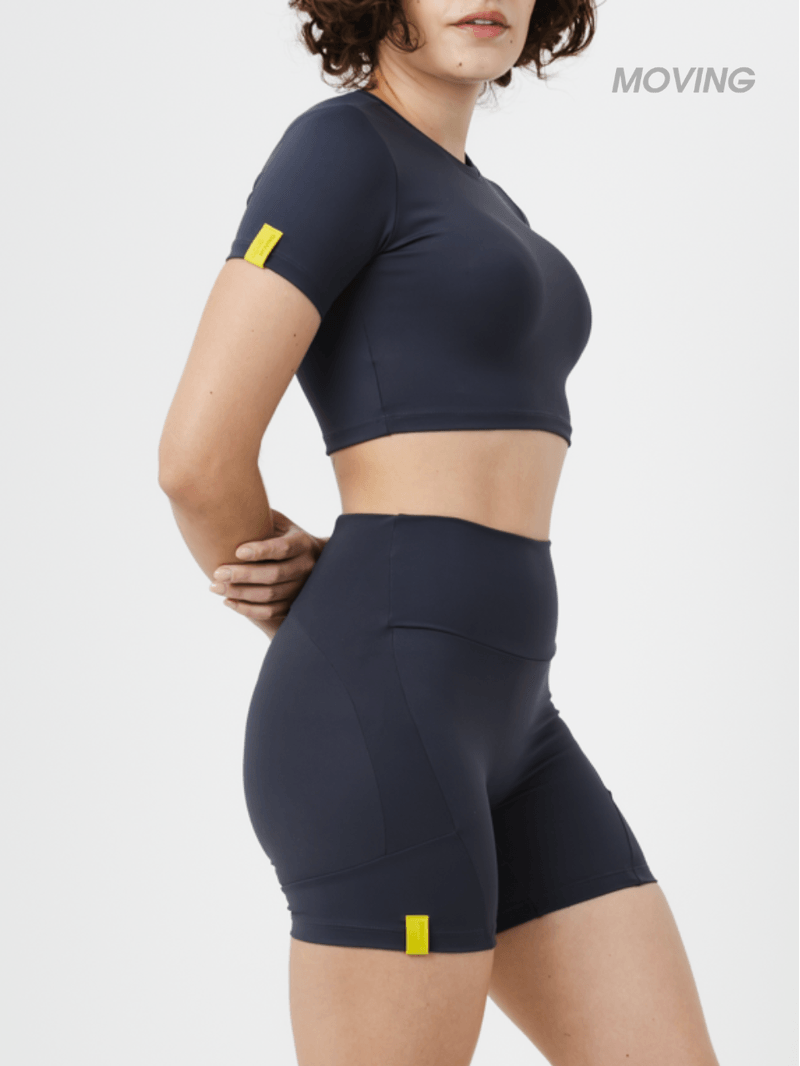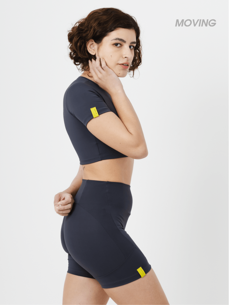 O tecido Action é uma poliamida com elastano macia e adaptável, que se ajusta perfeitamente ao corpo. Encorpado e com toque aveludado, proporciona sensação de frescor durante o uso.