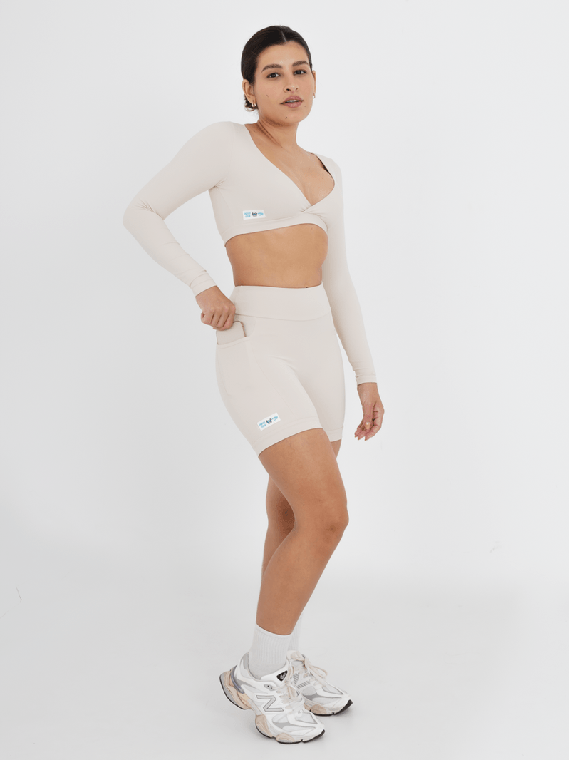 Da collab Agua Azul + Mais Mú, o Short New Biker é a versão do Short Biker sem zíper nos bolsos laterais. Ele é mais comprido e conta com um recorte especial na coxa que evita que ele suba ou embole durante a prática esportiva. Sem costura frontal, proporciona conforto e não marca. Os bolsos laterais permitem guardar seus itens essenciais durante a prática do esporte. Com cintura alta e pala grossa, que conta com elástico interno na barra para que o short permaneça no lugar, mesmo durante os treinos mais intensos. Ideal para quem busca praticidade, funcionalidade e conforto. A peça traz a etiqueta exclusiva da coleção— um detalhe que reforça sua identidade e autenticidade. Não possui costura empina bumbum.