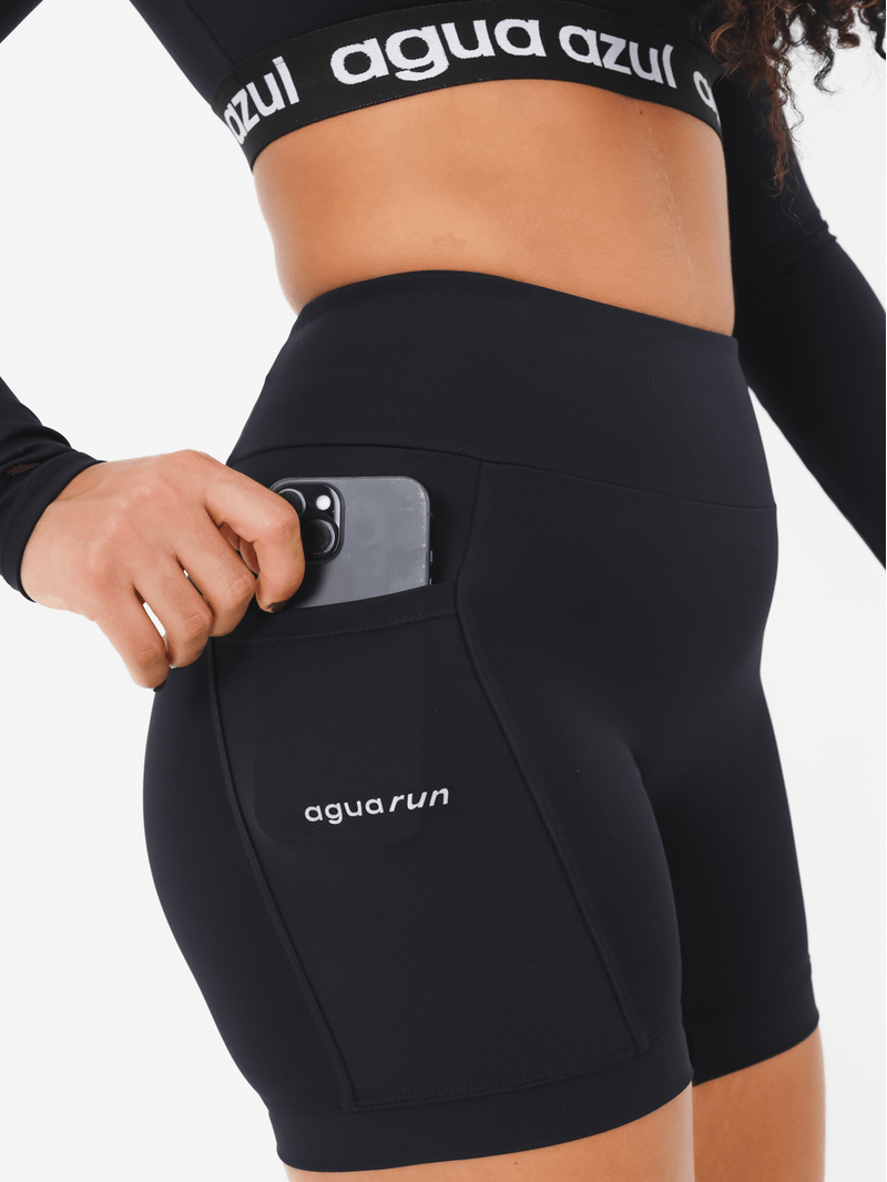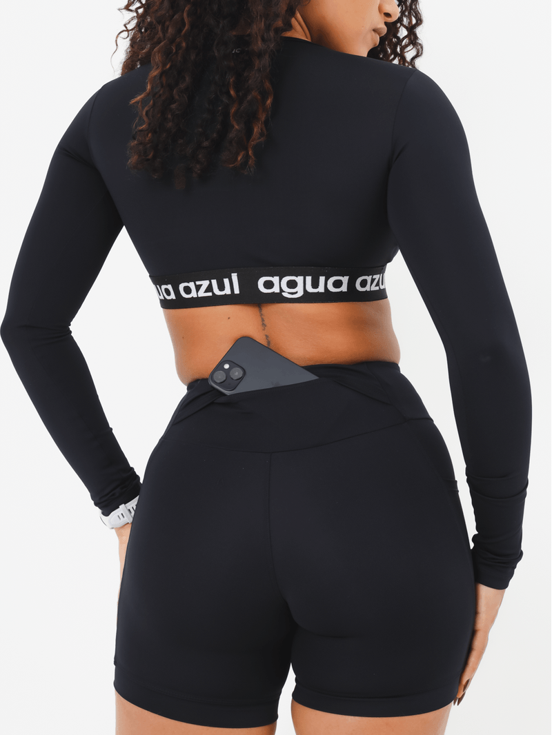 Nossa primeira linha de corrida chegou: Agua Run. O Short New Biker Run é mais comprido, com recorte especial na coxa que evita que suba ou embole. Sem costura frontal, garante conforto e não marca. Possui bolsos laterais e bolso envelope no cós traseiro, ideal para guardar acessórios com praticidade e segurança durante a corrida. Com cintura alta, pala grossa e elástico interno, permanece no lugar mesmo nos treinos mais intensos. Funcional, confortável e pensado para performance. Traz o detalhe refletivo exclusivo “Agua Run”. Não possui costura empina bumbum.
