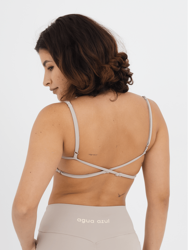 Top decotado com alças, levemente mais largas, cruzadas nas costas, que além de deixarem a peça super estilosa, permitem melhor sustentação por possuírem reguladores para ajuste ao corpo. Não possui entrada para bojo.