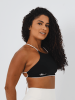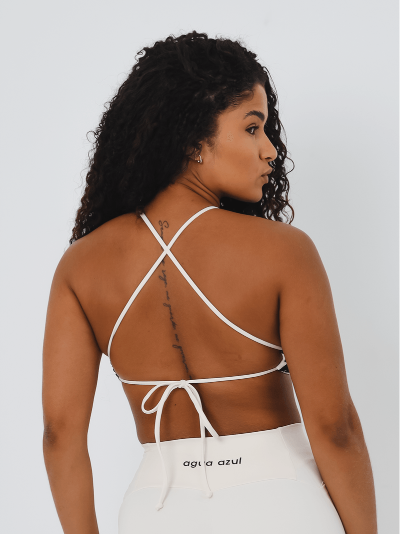 Top frente única e dupla face, oferecendo versatilidade com dois estilos em uma peça: de um lado na cor black e do outro na cor off white. As alças que amarram nas costas garantem um ajuste perfeito ao corpo. Sem entrada para bojo, este top é ideal para quem busca conforto e praticidade com um toque de elegância.