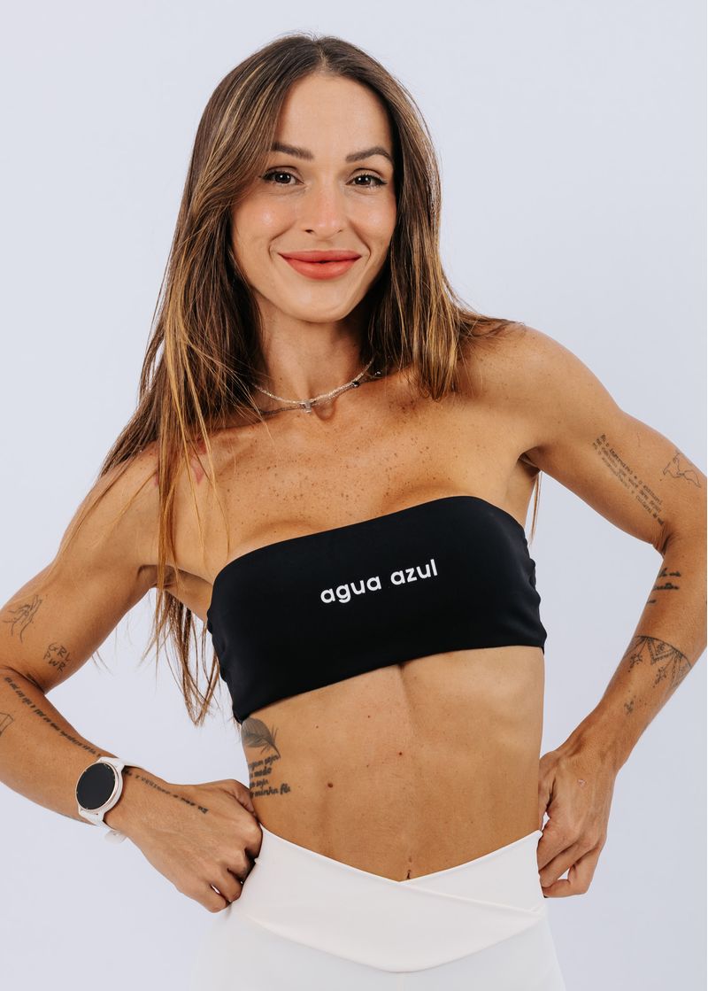 Top Faixa em tecido que garante uma ótima firmeza, conforto e se adapta perfeitamente ao corpo. Possui elástico interno para sustentação. Ele é forrado para melhor conforto e dispensa o uso de sutiã. Possui entrada para bojo. (Modelo veste P)