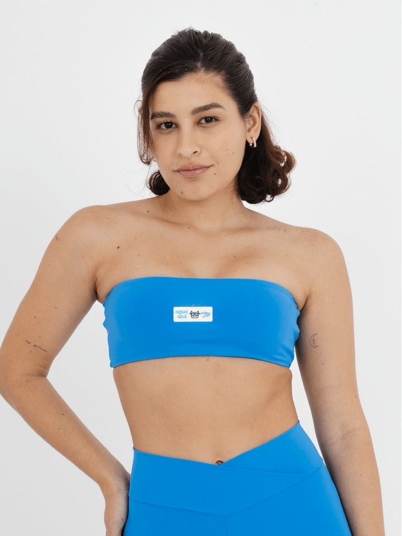 Da collab Agua Azul + Mais Mú, o Top Faixa em tecido que garante uma ótima firmeza, conforto e se adapta perfeitamente ao corpo. Possui elástico interno para sustentação. Ele é forrado para melhor conforto e dispensa o uso de sutiã. A peça traz a etiqueta exclusiva da coleção— um detalhe que reforça sua identidade e autenticidade. Possui entrada para bojo.