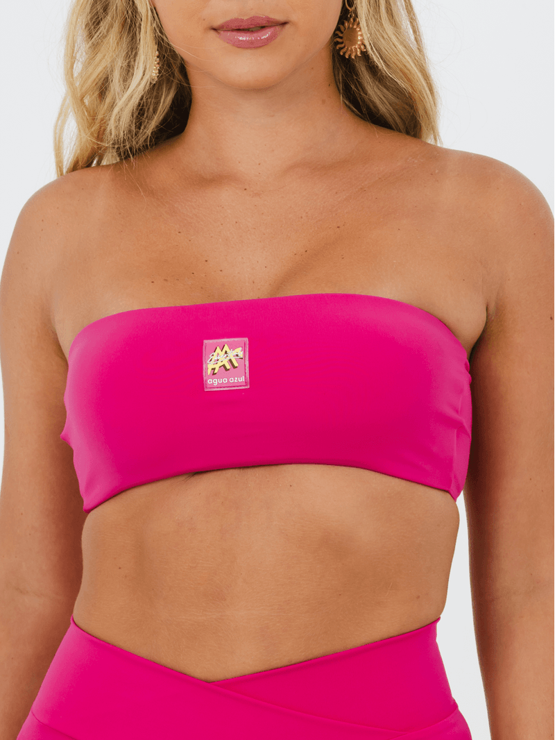 Top Faixa com modelagem impecável e elásticos internos nas extremidades para sustentação. Ele é forrado para melhor conforto e dispensa o uso de sutiã. Possui entrada para bojo. (Modelo veste P)