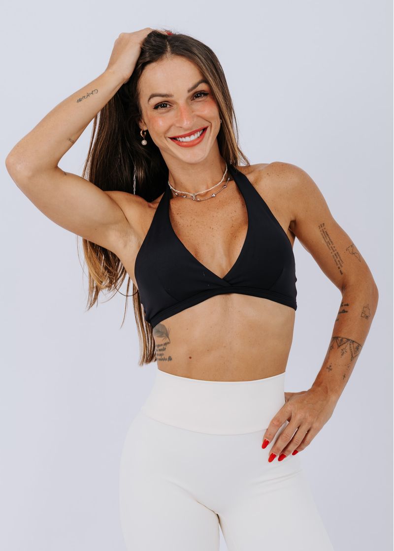 O Top Love é frente única decotado e agora veio com um transpasse frontal garantindo mais conforto e sustentação. Possui elásticos ao redor das laterais, assim como na barra, para melhor ajuste no corpo. Não possui entrada para bojo. (Modelo veste P)