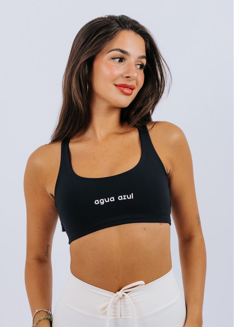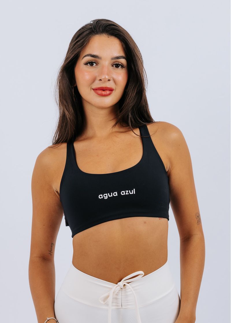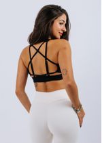 Top com decote arredondado e alças grossas que oferecem excelente sustentação e conforto. Nas costas, as alças criam um design exclusivo e possuem reguladores para um ajuste melhor ao corpo, garantindo firmeza durante os treinos. Possui entrada para bojo. (Modelo veste P) Medidas modelo: Busto: 78 cm Cintura: 64 cm Quadril: 93 cm Altura: 1,57 m