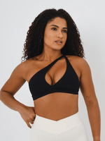 O Top Side é um top de um ombro que super valoriza o busto. Ele é mais decotado, mas as alças possuem elástico para melhor ajuste ao corpo. Nas costas, ele é vazado, com um decote liiiindo! Possui 3 formas de usar: a original, sendo de um ombro; frente única, com as alças fazendo um x nas costas; e com o decote na frente, fazendo um x frontal. Atenção aguete! O lado certo para usar a alça na versão um ombro é o lado ESQUERDO. Não possui entrada para bojo. Cor: Black Composição: 85% Poliamida + 15% Elastano